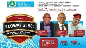 Caleb University, Imota, Lagos, on September 15, 2025 held a webinar series to discuss the impact of the Economic Community...