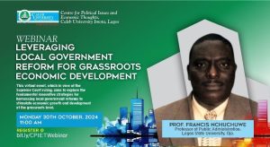 He spoke at a webinar themed: “Leveraging Local Government Reform for Grassroots Economic Development,” put together by the Centre for Political Issues and Economic Thoughts, Caleb University, Imota, Lagos.
